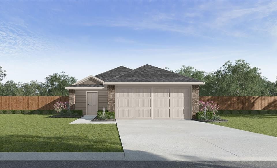 Discover the Estero plan, one of our new homes in Buffalo Farms in Oklahoma City. With 4 bedrooms, 2 bathrooms, and 1572 square feet, this home offers space and comfort. Secondary bedrooms are thoughtfully placed near the entry, leading you into the open-concept living spaces. The kitchen features 30” upper kitchen cabinets, soft-close cabinetry, chrome knob hardware, and stunning white quartz countertops on the front kitchen island, creating a clean, modern finish that elevates the space. At the back, the primary suite provides privacy with an adjoining bath and a generous walk-in closet. This home includes our Home Is Connected® smart home package — featuring a camera doorbell, control panel, Kwikset® keypad lock, and smart switches. . It also comes with a fully sodded front and back yard. This design blends function and style, making it perfect for families searching for new homes in Oklahoma City.
