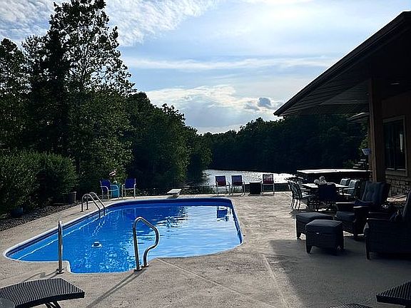 Breathtaking lakeInviting inground poolLarge two-way fireplaceParking areaMultiple hunting standsTwo docksSitting room