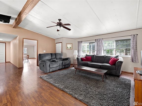 Home sits on over an acre of Private, Fully-Fenced and Gated Property. 30x30 Shop with room to park vehicles or an RV + workbenches and shelving. Outside you'll find a Greenhouse, Tool Shed, Power/Water Hookups for RV, Raised Garden Beds & Fruit Trees. Home has a Covered Front Porch and Large Back Deck that leads to Expansive Lawn and Garden Spaces. Features include Heat Pump & A/C, Vinyl Windows, Wood Trim, Solar Tubes, Vaulted Ceilings, Laminate Wood Floors & Large Bedrooms. Kitchen with Skylight & Stainless Double Sink adjoins Sunny Dining Space with Slider to Deck. Master Suite has Walk-in Closet & attached Bath with Soaking Tub & New Vanity with Brushed Nickel Hardware. Enjoy a little space for yourself in this sought after community!