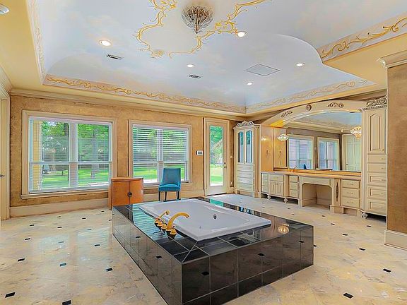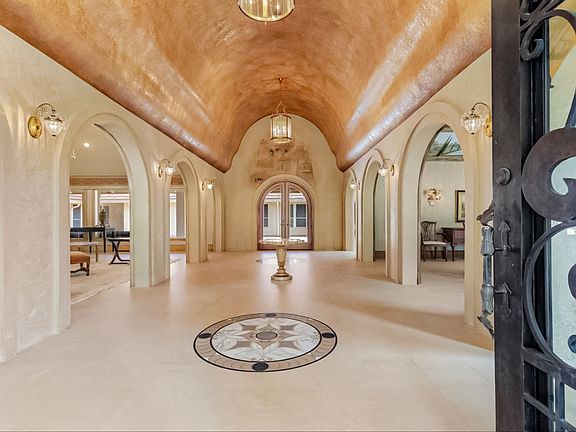 Private gymResort-style poolFour-car garageFormal dining roomExecutive libraryCustom-built home theaterGated circular driveway