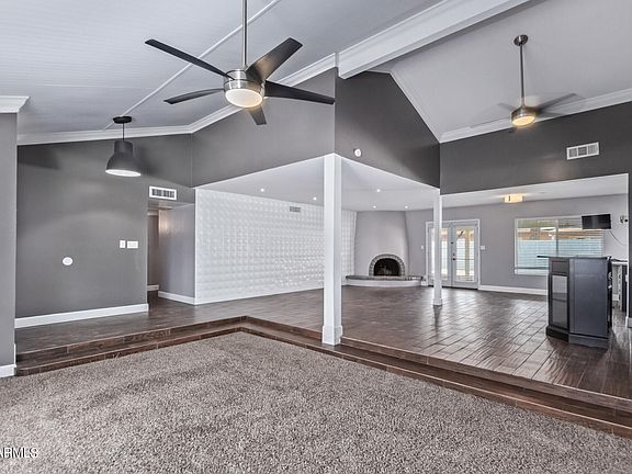 Refreshing poolCovered patioCorner fireplaceOpen floor planCorner lotWelcoming courtyard entranceStylish tile backsplash