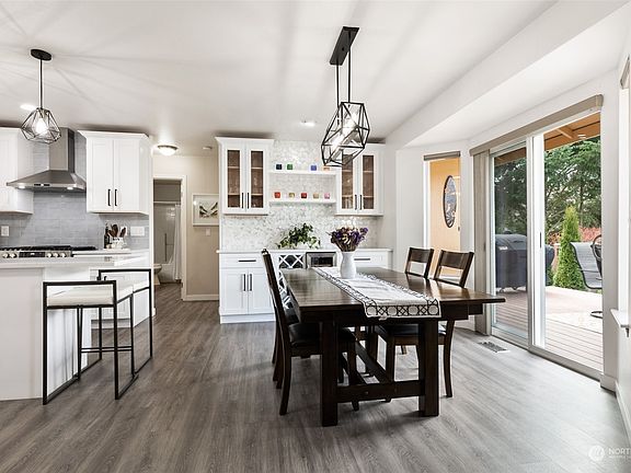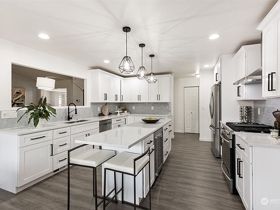 This exceptionally well maintained home with private beach access to American Lake is by far the nicest in the neighborhood. The impeccable landscaping is your first "wow." Step inside to be even more impressed. French Doors open to an impressive home office, originally a third bedroom. The completely remodeled bathroom in your primary suite is anchored by a freestanding designer tub. Your second bathroom, also remodeled, is equally luxurious. A jaw-dropping brand new kitchen is truly over-the-top: two pantries, single deep farmhouse sink with a touchless faucet, beverage & wine refrigerators, plus more. Glass doors open from the dining area to an amazing carefree deck surrounded by a perfect fenced yard. This is your new home!