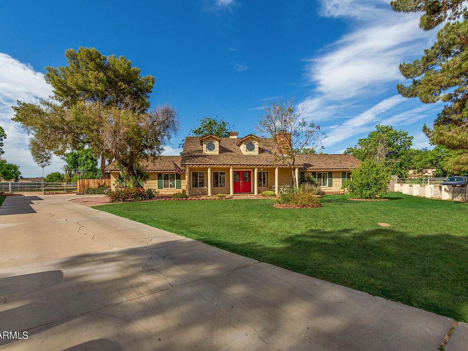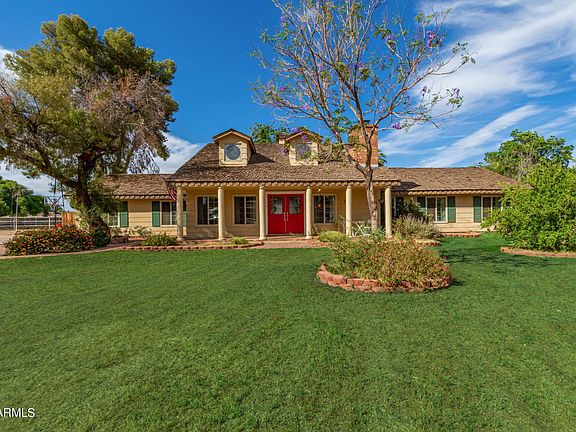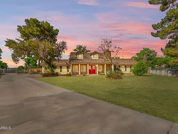 Welcome home! Beautiful horse property nestled in the highly desirable Tolsun Farms community with easy access to the I-10, just 20 minutes from Downtown Phoenix. This irrigated property features mature citrus, fruit and nut trees in addition to lush grassy areas. The beautiful steel Barn w/ 2 horse stalls in addition & sectioned off areas to make this ranch your own. Backyard is complete with 2 RV gates, great lighted outdoor space for hosting large events and a newly resurfaced pebbletec pool surrounded by a 6' child proof pool fence. Interior is custom design with open modern rustic design throughout w/ vaulted ceilings, wood staircase leading to master loft & private balcony, brick fireplace, modern bathrooms, upgrades in kitchen. Homes like this in Tolsun Farms won't last long. No HOA