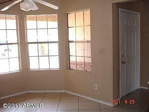 Very nice 3 bedroom split floor plan with two full baths. Great looking brick fireplace in great room, tile flooring in Kitchen w/bay out eat in dining. Tile entry leading to formal dining in great room w/vaulted ceilings. Large back patio to yard with block wall fencing. Close to school and retail shops and Phoenix Stadium and Spring Ball fields. Nice home for family or great Investor Opportunity. Rental Income from $750 to $850/mo