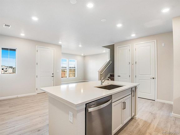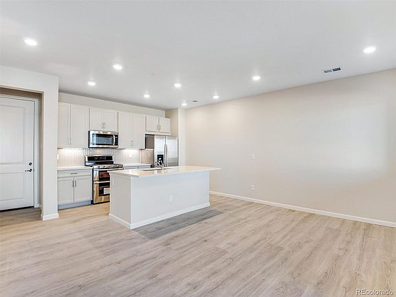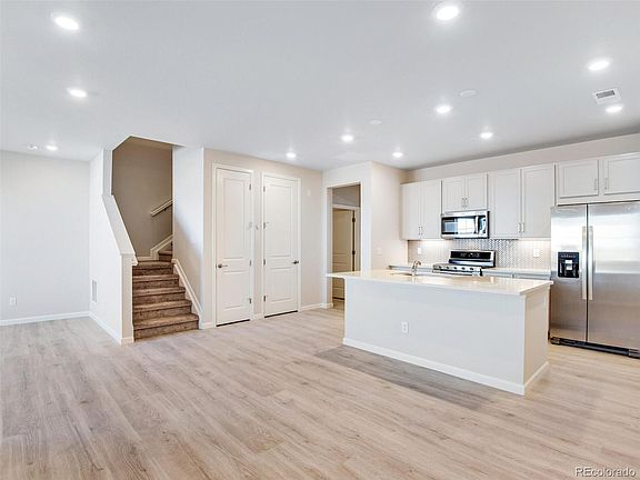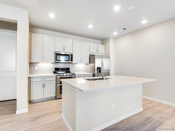 Move-in Ready! Amazing opportunity and value. Perfectly sized, yet spacious floorplan, with stylish interior details including wide plank laminate flooring in a grey wood, quartz kitchen countertops, grey cabinetry and stainless steel appliances including double ovens and a side-by-side fridge. As you approach the home, you are initially greeted by a private front porch overlooking a community greenbelt and upon entering you'll discover an open dining room, kitchen, great room and attached 2 car garage. Upstairs includes the primary suite, a additional bedroom, laundry room and a tech loft. Located in the amenity rich community of Sterling Ranch! Sterling Ranch boasts 30 miles of trails, prolific open space, educational gardens, town center, civic center, recreation center with pool, clubhouse and fitness center, plus so much more! Instead of a traditional HOA, Sterling Ranch has a Community Authority Board (CAB) that operates like an HOA. The majority of the community costs are paid through property taxes, however, please visit the Sterling Ranch CAB website for retailed information on the additional quarterly and monthly fees (https://sterlingranchcab.com/).