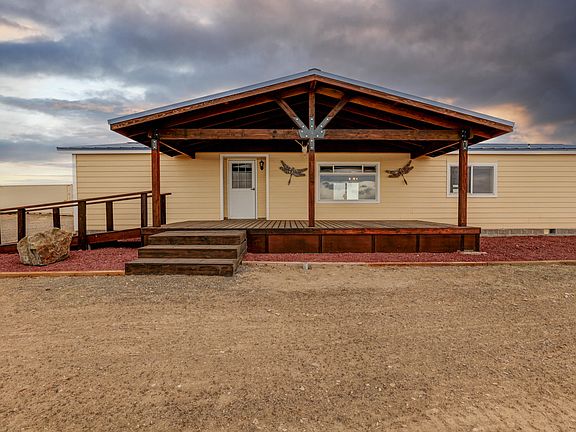 Enjoy the Sunrise and Sunsets from this beautiful home perched on an elevated spot overlooking the valley and mountain ranges. VERY clean and well maintained home with some nice upgrades such as a metal roof, marmoleum tile flooring throughout the kitchen, laundry and dining area, new exterior paint, solid core fir interior doors, ceiling fans, propane fireplace for additional heat, jetted tub and upgraded carpet. There's also a full concrete slab underneath for clean easy access. About 20 acres of cleared land with underground sprinkler system already installed and RV parking that has full hookups. Close to BLM and Sand Dunes. This property is turn-key and ready to go, set up your viewing appointment before it's gone!