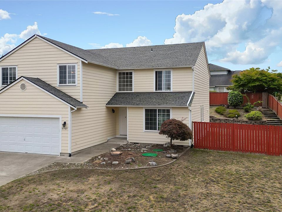 Welcome to this stunning 5-bedroom home on one of the largest corner lots in the neighborhood! The main floor features a formal living/dining area, a second living space with slider to the backyard with a cozy tiled gas fireplace, a spacious kitchen with breakfast nook, and a versatile den/office or 5th bdrm on the main floor. Upstairs, enjoy the oversized primary suite with a 5-piece bath and walk-in closet, plus 3 additional bedrooms and a full bath. Entertain or relax in the spectacular fully-fenced backyard with a Trex deck. New Paint & Carpet. Just a short walk to the RAC and minutes to Lacey, Olympia, JBLM, shopping, dining, schools, and parks—this home combines space, comfort, and convenience! Price to Sell.