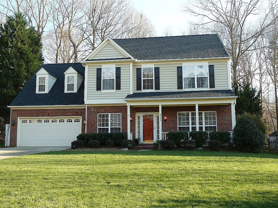 Welcome home. Prime location! Beautiful street in gorgeous Wynfield Forest! 5 bedroom or 4 bedroom + large bonus room home with 2.5 baths. Great location with easy access to shopping & schools. Spacious, updated kitchen with white quartz countertops and center island. Enjoy cooking with stainless steel appliances with gas cooktop and double wall ovens. Beautiful stone fireplace surrounded by built-in book casings in living room. Relax year round in your gorgeous, tranquil four season sunroom with additional fireplace and enjoy the level yard with mature trees! Very light & bright open floorplan. Need two home offices? Main level office with French doors or use the amply sized media room with built-ins as the second home office. Tons of storage & closet space including walk-in attic storage. 9-foot ceilings on first floor and vaulted master suite upstairs. Gorgeous updated master bath. Great floor plan - no bedroom walls shared with another bedroom - very quiet. Wynfield Forest - a friendly community with wonderful amenities - pool, volleyball, tennis or pickle ball, basketball, kids playground, a great swim team, and close to greenways. A beautiful, walkable neighborhood with mature trees! This home is close to schools, churches, shopping, two lakes, highways, uptown Charlotte & Charlotte Douglas International Airport.
