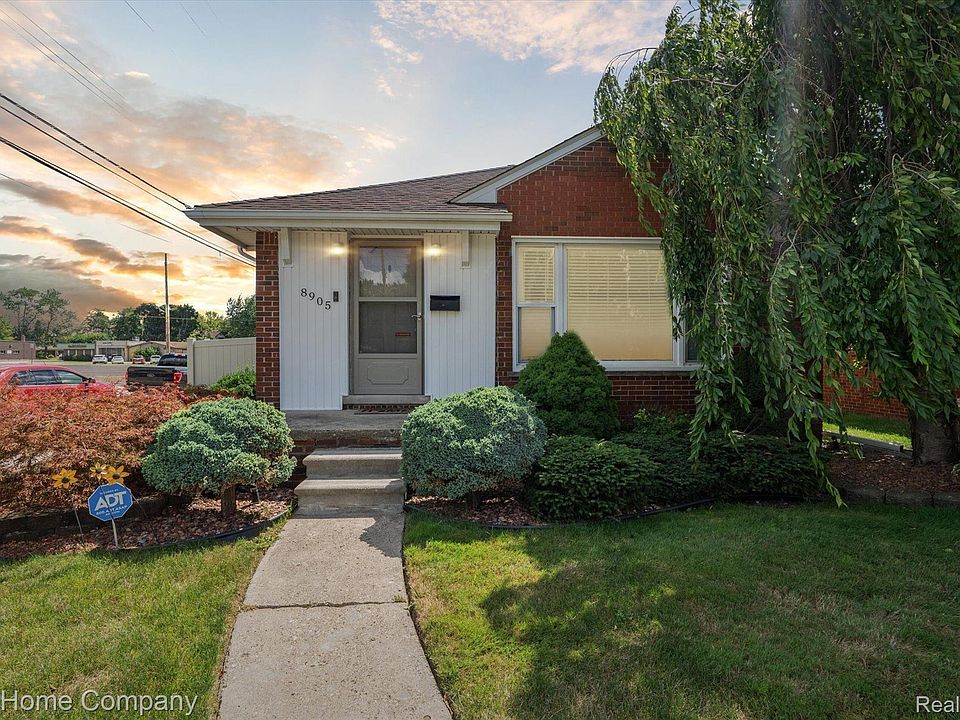 Discover this impeccably maintained 3-bedroom, 2-bath brick ranch in Allen Park! The kitchen features granite countertops and new stainless steel appliances. The finished basement adds three additional rooms that can serve as bedrooms, along with a FULL bathroom. Hardwood floors run throughout the main level, enhancing the home's charm. Situated on a corner lot, the property boasts a vinyl privacy fence, a spacious 2 car detached garage, and a sprinkler system. Recent upgrades include a newer A/C unit and a replaced sewer line in the basement (2022). The backyard features a patio space and is perfect for entertaining. Plus, with solar panels, you might enjoy a nice break on that electricity bill! This home is a must-see!