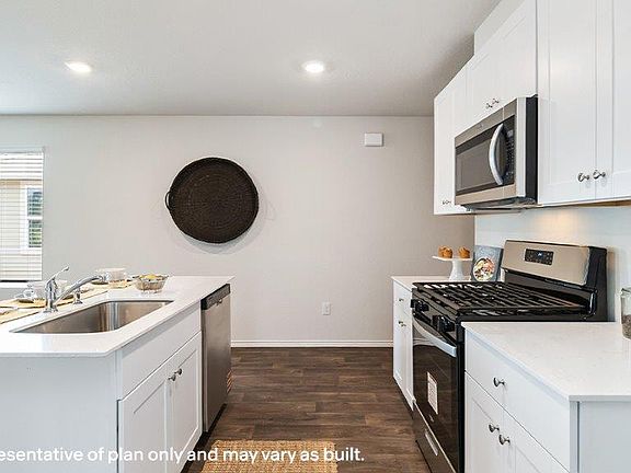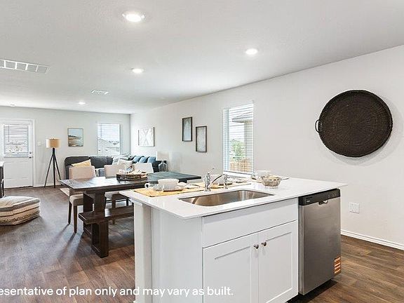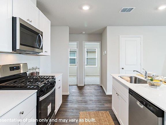Discover the Barton plan, one of our new homes in Buffalo Farms in Oklahoma City. With 3 bedrooms, 2 bathrooms, and 1280 square feet, this home offers space and comfort. Secondary bedrooms are thoughtfully placed near the entry, leading you into the open-concept living spaces. The kitchen showcases shaker-style cabinets, stainless steel appliances, a pantry, and a central island with sink and dishwasher. At the back, the primary suite provides privacy with an adjoining bath and a generous walk-in closet. This home includes our Home Is Connected® smart home package — featuring a camera doorbell, control panel, Kwikset® keypad lock, and smart switches. It also comes with a fully sodded front and back yard. This design blends function and style, making it perfect for families searching for new homes in Oklahoma City.