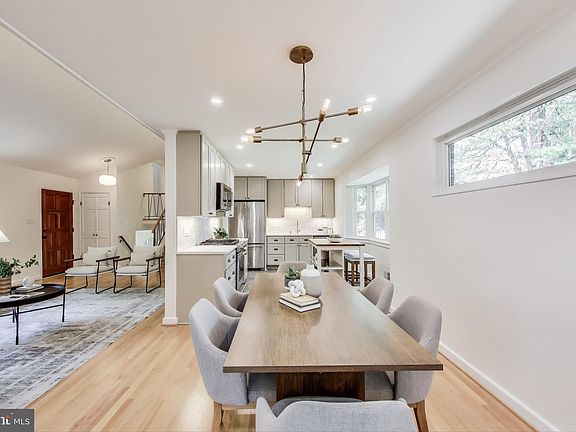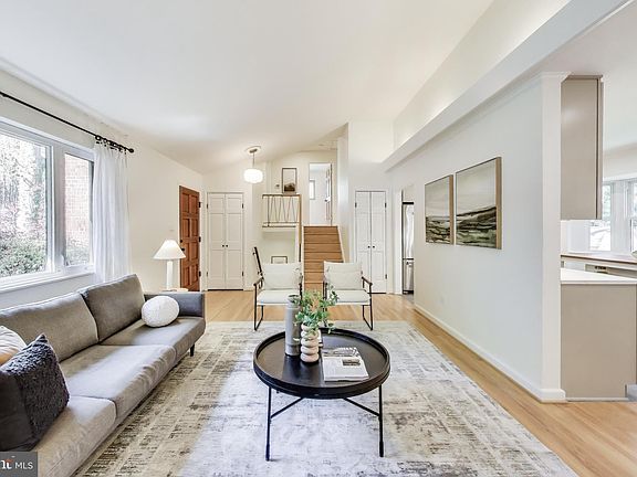 Renovated with mid-century modern touches, this Chevy Chase split level home offers tremendous value and move-in ready condition for its next owner. Entering the home, there is a sense of warmth and coziness, aided by the vaulted ceilings throughout the living room, which is filled with natural light. The main level is highlighted by the tasteful kitchen renovation done in 2022 featuring white, quartz countertops, custom cabinetry, and new stainless steel appliances. The light and airy seal of the main floor spills into the finished den offering windows on three sides as a flexible space - e.g., work from home, play area, or a secondary sitting room with green views to the landscaped yard. Upstairs, you will find three well proportioned bedrooms with recently-refinished wood floors and two full baths. The master bath was renovated in 2024 with high-end designer tile, walk-in shower, and ergonomic storage. The first level down only adds to the efficiency of spatial organization in the home. The large rec room is a flexible space with recessed lights and above-grade windows, maintaining good natural light. A guest room and half bath are also featured on this level in addition to the laundry room, which is spacious and convenient. A rare fourth level only adds to the value proposition within the home. The unfinished basement is dry and maintains good ceiling height, offering valuable storage space and an opportunity to add to the total finished square footage. Renovated in 2021, the fully fenced private backyard with low maintenance appeal is grounded in the sweeping patio and turf laid play space. All of this in a tremendous location with easy access to all commuting routes, the Chevy Chase Lake development, and Chevy Chase Recreation Association (pool, clubhouse with food, tennis courts and tot lot). Book your showing today as this home will be gone before you know it!