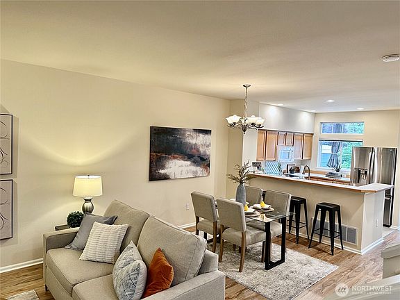 Over $20k in upgrades. New flooring throughout. This lrg 2 bedroom w bonus office / game room is easy access to all of the Eastside. Fantastic large condominium home in the highly sought after Highlands Community. The home has large open living space w light filled dining room and open kitchen. 2 large bedrooms upstairs. The main bedroom w vaulted ceilings has 3/4 bathroom and walk in closet. A 2nd full bathroom is just off the second bedroom. A 3rd half bath is on the main floor off the kitchen / dining. The home has a large 2 car garage w mud room entry and bonus flex room as office or gaming. Current carpet flooring should be replaced to make it pop! Seller encourages a negotiated solution instead of picking out new flooring.