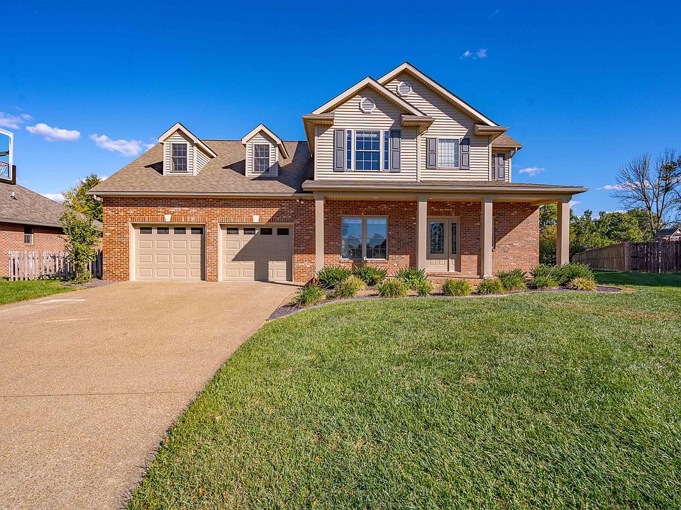Welcome to this inviting two-story home located near Castle School, shopping, and hospitals. With 4-5 bedrooms, including a spacious first-floor owner’s suite featuring a large walk-in closet and trayed ceiling, this home provides plenty of room for comfortable living. The kitchen boasts custom cabinetry, granite countertops, and stainless steel appliances, and opens to a cozy living room with a gas fireplace. From the kitchen, access the covered patio and large backyard—ideal for relaxation or outdoor activities. The home features a two-story entry with a custom-designed staircase and diagonal tile flooring. A formal dining room adds a touch of elegance, while upstairs offers three more bedrooms, a full bath with double sinks, and a bonus room that could serve as a fifth bedroom. Recent updates include a newer HVAC system and roof, ensuring peace of mind and energy efficiency. Outside, enjoy covered front and back porches, mature landscaping, and a dog run with a wood fence. This well-maintained home offers a simple yet comfortable lifestyle, with easy access to Evansville and all nearby amenities.