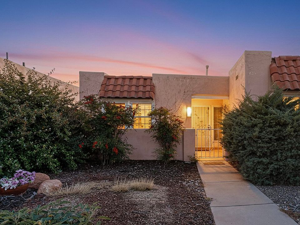 Welcome to this well-maintained 2-bedroom, 2-bath home in a desirable Albuquerque location. Features include an open floor plan, bright living spaces, and custom wall paintings that add unique character and style. The primary suite offers a private bath and generous closet space. Enjoy a low-maintenance yard and a 2-car garage for added convenience. Close to shopping, dining, and outdoor recreation. A perfect blend of comfort and charm.