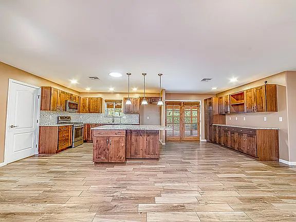 Enjoy the flexibility of two spacious master suites each with its own custom-tiled walk-in shower and quartz-topped vanity plus a full guest bathroom perfectly situated off the open-concept kitchen. The expansive great room glows with natural light from oversized picture windows and offers five pre-wired locations for wall-mounted TVs. Entertain in style in the chef's kitchen featuring knotty wood soft-close cabinetry, granite slab countertops, gas cooking, a large eat-in bar, under-mount sink, and a custom tile backsplash.