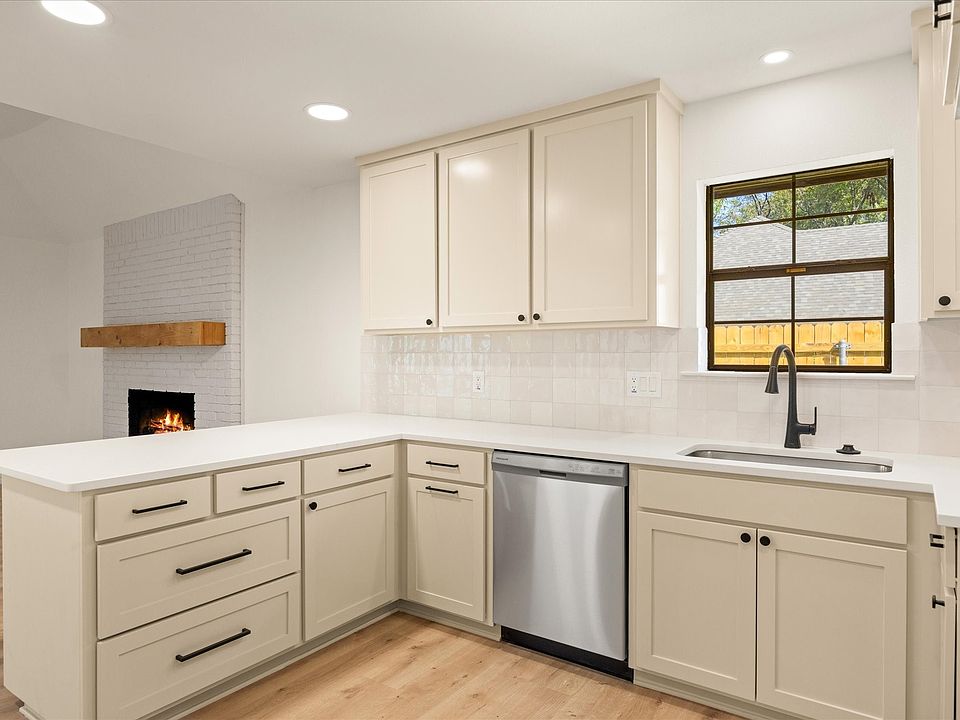 Every detail has been thoughtfully updated to reflect modern living—from fresh interior and exterior paint to brand-new flooring throughout. Enjoy designer lighting, ceiling fans, a new roof, a new fence, and more.The kitchen is a true showstopper, fully remodeled with sleek stainless-steel appliances, newly painted cabinets with updated hardware, and elegant quartz countertops. It's the perfect space for both everyday living and entertaining.Step outside into your private backyard retreat, framed by mature trees—ideal for quiet relaxation or weekend gatherings. Additional highlights include a circle driveway and a convenient half bath just inside the entrance from the garage, perfect for guests or DIY projects.