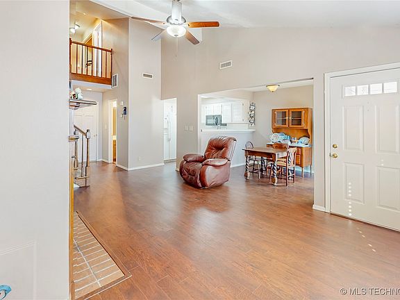 You'll Love this 2 story Condo! Amazing Location in South Tulsa! 2 Bedroom. 2.5 Bath. 2 Car Garage. Wood Flooring. Vaulted Ceilings. Fireplace. Washer/ Dryer/ Refrigerator will remain. Pool and Clubhouse in Complex. Union Schools. Quiet Neighborhood. Schedule your showing today!
