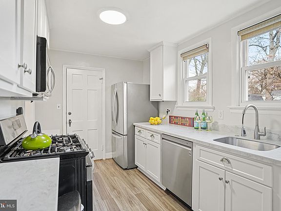 Welcome home to this delightful 3-bedroom, 1 full bathroom, 2- half bathroom brick Cape Cod, blending timeless charm with modern comfort! This well-maintained home greets you with a relaxing front porch with Trex decking, perfect for sipping your morning coffee or unwinding in the evening breeze. Step inside to discover a warm and welcoming living space, featuring classic architectural details, abundant natural light, and beautiful hardwood floors. The main level boasts a cozy living room with a woodburning fireplace. The living room opens to a bright side sunroom, an ideal retreat for reading, plants, or a cheerful home office. Continuing around the house is a separate dining room and an updated kitchen (2022), with Corian countertops, stainless steel appliances and luxury vinyl planking floors. An oversized window looks out to the large backyard. The main level highlights also include, recessed lighting, a powder room, access to the garage, backyard and side porch. Upstairs, you'll find three comfortable bedrooms with generous closet space, all conveniently located near the full bathroom. The layout is perfect for anyone seeking a blend of privacy and functionality. Out back, enjoy the large, level, fully fenced backyard, a rare find! Whether you're hosting summer barbecues, gardening, or relaxing, this outdoor space is truly a standout feature. Additional highlights include a full basement for storage or future livable space, with a ¼ bathroom, a private driveway, and a convenient location close to public transportation, 495, downtown Washington D.C., Baltimore, parks, schools, shopping, and dining and so much more!