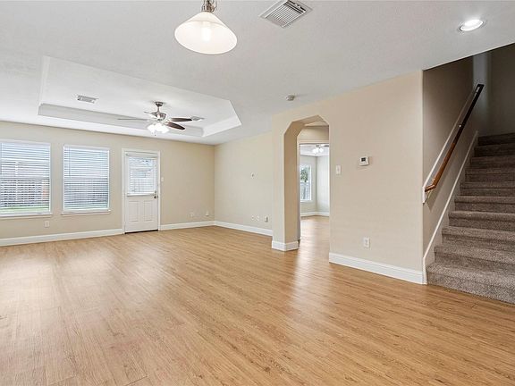 Welcome to 8907 Grand Villa Lane, a well-maintained 4-bed, 2.5-bath home with 2,217 sq ft of living space in the Bradford Park community of Richmond, TX. Step inside to a bright, open living area with laminate flooring downstairs and new carpet upstairs. The kitchen features granite countertops and a stylish backsplash. The primary suite is conveniently located on the first floor and includes vaulted ceilings, a large walk-in closet, and a bath with a separate tub and shower. Freshly painted throughout, this home feels fresh and move-in ready. Upstairs, you'll find a versatile game room and three additional bedrooms, all offering space and flexibility. The fenced backyard backs to a green space, adding privacy, and the attached two-car garage and updated systems provide comfort and convenience. Located minutes from George Bush Park, Waterview Town Center, and with easy access to Grand Parkway (99) and Westpark Tollway, this home offers both comfort and connection in a growing area.