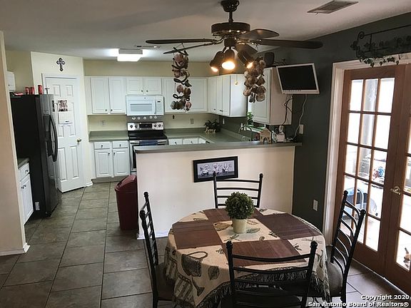 Unique Floorplan w/ High Ceilings. * 2 Living & 2 Dining Areas. * Large Kitchen Features Lots of Countertop Space with Plenty of Cabinet Area. Walk-In Pantry & Breakfast Bar; Overlooks Breakfast Area. * Master Suite Features Ceiling Fan, Walk-In Closet & Full Bath w/ Garden Tub & Separate Shower. * All Bedrooms Have Walk-In Closets. * Huge Sun Room Measures 20'x10'. * Backyard Features Covered Patio & Privacy Fence. * Close to Randolph AFB & Shopping & Easy . ** Interior to be freshly painted as of Aug 2007