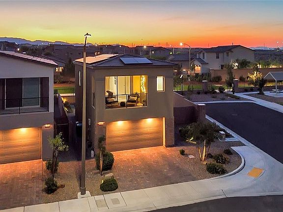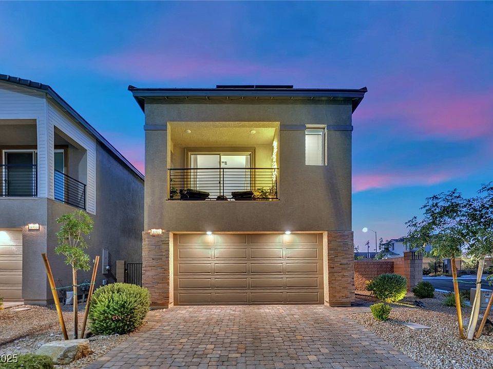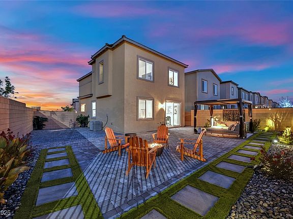 Welcome to 8907 Roadrunner Ravine, a beautifully appointed Lennar home built in 2022, perfectly situated on a spacious corner lot in the desirable Skye Canyon community. With a scenic walking trail directly behind the property, you’ll enjoy both privacy and serene outdoor views. This modern two-story residence offers 3 bedrooms, 2.5 bathrooms. The primary suite features a private balcony—perfect for morning coffee or evening sunsets. Energy efficiency is a breeze with solar panels already in place. All furniture is negotiable through a separate bill of sale, offering the opportunity for a turnkey move-in experience. Located in the master-planned Skye Canyon community, you’ll enjoy access to parks, trails, fitness facilities, and a vibrant social calendar—plus the convenience of nearby shopping, dining, and freeway access. Don’t miss your chance to own this stunning, nearly new home with the perfect blend of comfort, style, and location.
