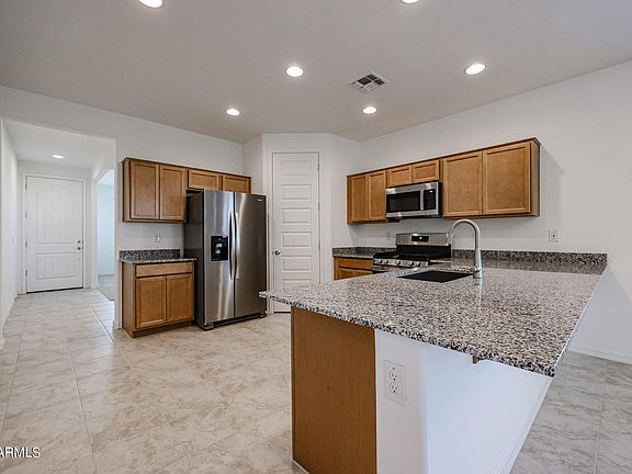 4 bedroom + Den, 2 bathroom home in Stonehaven! Home has open floor plan with upgraded kitchen including granite countertops and stainless steel appliances overlooking large great room and den. Master bedroom has huge walk in closet and plenty of space. Backyard includes covered patio, artificial turf and pavers. Stonehaven includes a beautiful community pool and tons of walking/biking paths and parks. Home is close to Cardinals Stadium, shopping, dining, entertainment and 101 freeway.