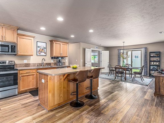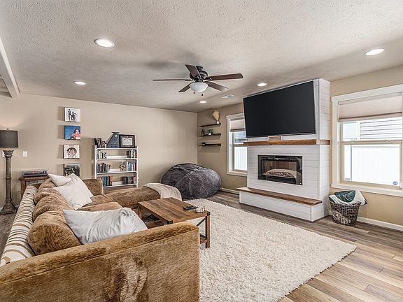 Gorgeous one-story home is open and bright with special designer touches making this home stand above the rest. Great room concept with separate spaces near each other so everyone can be part of the action! Spacious living room with modern fireplace focal point is adjacent to the kitchen with oversized island, Corian countertops, stainless appliances & tons of counter space. Eating area near kitchen creates a great place for a formal dinner when you don't want to use the easy eating bar. Office has double door access & plenty of room for 2+ workstations. Nice sized bedrms with lg closets. Large main bath. Roomy laundry w/plenty of space for folding, drying & storage too. Primary bedrm is on the other side of the home & a true retreat with plenty of space for furniture as well as big closet and private bath w/exceptional walk-in shower. Covered back patio creates space to enjoy year-round. Fenced yard w/sprinkler sys. Garage must not be missed--insulated + finished floor! Smart home features! Appliances stay.