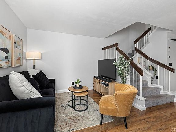 Welcome to this move-in ready two bedroom, two and a half bath with a private patio and office space! Beautifully designed end unit that feels like a single family home with two spacious primary bedrooms upstairs, half bath on the main floor AND an office on the large private patio. Open concept kitchen that flows into the dining area and living room, perfect for entertaining. Light and bright with custom treatments and vaulted ceilings makes it feel open and airy. Well maintained with new central heat and air conditioning, fresh paint, new induction stove in the kitchen and closet systems in each room. In-unit laundry is tucked away on the main floor with plenty of storage throughout. Community amenities include: two gated entrances, pool, spa, playground, dog run, lush grounds and two parking spaces, all with affordable HOA dues making this the perfect place to call home.