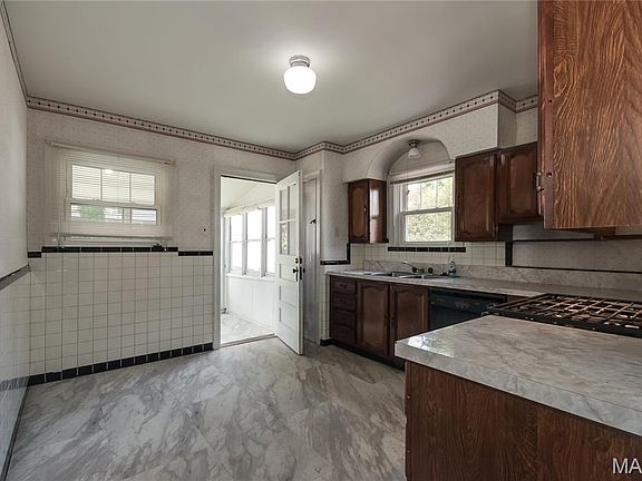 Nicely cared for 3-bedroom, 1-1/2 story brick home. Wood flooring recently uncovered from years of carpet leaving them in very good condition, freshly painted neutral colors. Replacement windows throughout. Primary bedroom has walkout to sunroom. Original wood trim in very good condition with picture frame doors and natural baseboards. Upstairs is a large 3rd bedroom, and attic area provides lots of storage or another bedroom to finish. Full basement with walk out. Concrete drive to separate newer 2 car oversize garage with power. Recent sewer lateral repair. Enjoy the fenced yard with plenty of perennials from the sunroom with 3 sides of screened windows. Recently passed environmental inspections. Easy access to lots of shopping, airport, and transportation