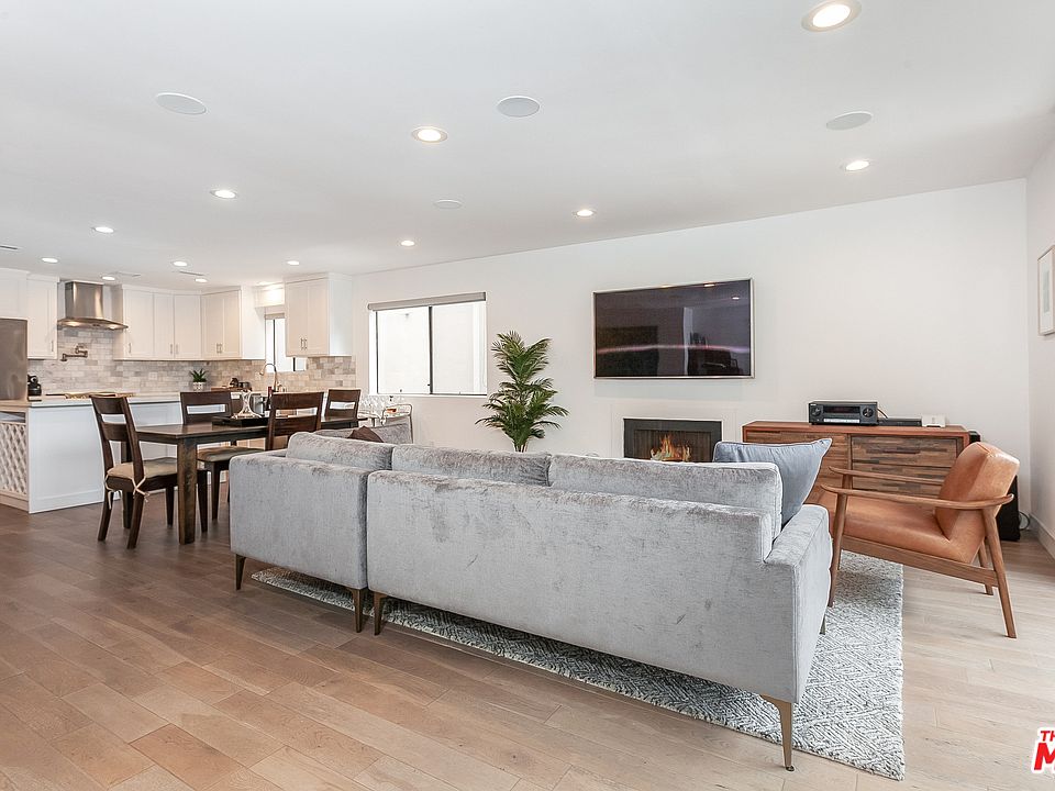 Situated in an intimate boutique 10-unit building is this beautifully remodeled open floor plan 2 bed, 2 bath corner residence featuring a large custom kitchen with high-end appliances, a wine cooler, and a center island, all dressed in luxury finishes. The kitchen flows seamlessly into the main living space which is flooded with natural light and opens up to a south facing balcony with tree top views making it ideal for entertaining. The master suite includes a custom fully built-out walk-in closet and a luxurious bathroom with a large steam shower. The 2nd bedroom is perfect for a home office or space to welcome overnight guests. Additional features include hardwood floors, recessed LED lighting, built-in surround sound system, in-unit washer/dryer, nest controlled central air/heat, parking for 2 cars + ample storage in a secured garage. Ideally located just steps from trendy Robertson, 3rd street, and some of the best dining and shopping Beverly Hills / West Hollywood have to offer.