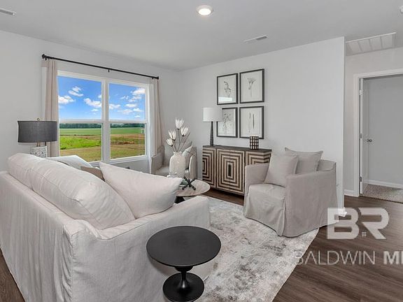 Move-In-Ready! The Aldridge is a desirable one-story floor plan in our Paxton Farms community in Foley, Alabama. With three modern exterior options, the Aldridge is guaranteed to catch your attention.This home features 3 bedrooms, 2 bathrooms, and a two-car garage and boasts 1,272 square feet of space.As you step inside the foyer, you will immediately notice the high-quality details and finishes that adorn every corner. Adjacent to the foyer, you’ll find the primary bedroom, laundry room, and garage. As you continue down the hall, you’ll enter the great room, where the open-concept design seamlessly integrates the kitchen, living, and dining areas, allowing natural light to flood the space.The kitchen flaunts white shaker-style cabinets, granite countertops, a peninsula island, stainless steel appliances, and a spacious pantry for extra storage. The primary suite features a private bathroom with a double vanity, shaker-style cabinets, and enclosed shower and a 12-feet-deep walk-in closet. Bedrooms two and three are situated off the living room and perfect for children, guests, or a home office. They share a conveniently located bathroom with a bathtub/shower combination and separate linen closet.The outdoor area includes a covered patio and spacious backyard, perfect for unwinding or entertaining.These homes are built to Gold FORTIFIED HomeTM certification, which may save the buyer on their homeowner’s insurance (See Sales Representative for details). The Smart Home Connect Technology System includes your video doorbell, keyless entry door lock, programmable thermostat, a touchscreen control device, a smart light switch, and more. Homes include a one-year builder warranty and a 10-year structural warranty.Don’t wait, contact us today to make Paxton Farms your new home! Buyer to verify all information during due diligence.