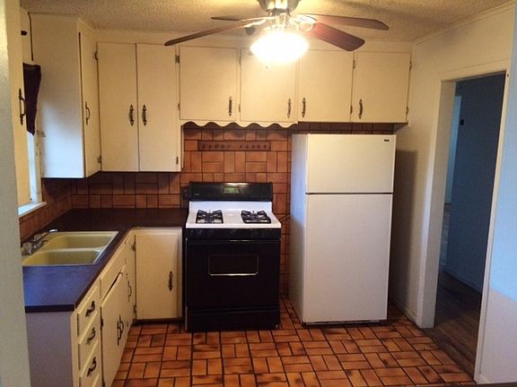 Three bedrooms, one bath. Cute kitchen is open to living area. Stove and refrigerator included. Hardwood floors throughout with ceramic tile in kitchen and bath. Unique wood stove in living room. Washer and dryer hookups are in one car garage. (Washer and dryer included but not guaranteed to work.) Central heat and window units. Fenced backyard. Drive by to check it out and if interested, text 918-639-4749 for questions and showing times. Tenant responsible for all utilities and yard maintenance. Pets negotiable with $150 pet deposit per pet and $25 extra per month per pet.