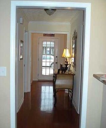 NO CARPET!!! All wood or tile floors are just a few of the upgrades you will find in this brick and vinyl sided, low maintenance home! Trey ceilings and open floor plan makes this home seem larger than it actually is! Great room open to the kitchen and has fireplace with flat screen mounted above to remain. Kitchen features warm wood cabinets, black appliance package, and breakfast room. Huge separate laundry room off kitchen with pantry. Main bedroom suite includes oversized separate shower, garden tub, two vanities, and walk in closet! Fenced backyard, partially covered patio, additional tiled patio, and pretty raised flowerbeds! Dog run on the side of the home, and attached storage room. You will love this home!