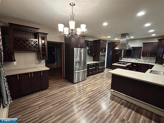 The lake home you've been looking for! This spacious home is located just 10 minutes north of Virginia on beautiful Sand Lake. Inside the home you'll find a long list of must-haves. The main level kitchen is large and open with granite counters, stainless steel appliances, center island, glass tile back splash and cherry cabinets. Also on the main level is the master bedroom with bath, a second bedroom across the hall from the master, family room with wood burning fireplace, dining room and another half bath. Walk down stairs and it seems the space never ends. You'll find 3 more bedrooms, a full bath, another family room, huge laundry room, and a cedar sauna with an electric stove. Once outside you'll find 95 feet of beach, ANOTHER sauna, two decks off home, two garages and a paved driveway. Septic has been inspected and ready to go.