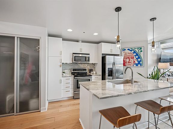 Completely updated downtown condo with beautiful mountain and city views. Featuring wide-plank blonde engineered hardwood, quartzite counters, granite sink. Bathroom gutted in 2024 has fluted vanity w/ marble top, all brass hardware/lighting, granite hex flooring, frameless shower, stacked subway tile, rainfall shower head w/spray wand. Endless storage by California Closets including: Entry Cabinet with brass hooks, bench seating, cabinets and in-drawer plug for charging, 2nd Bedroom Murphy Bed and Desk System with closet, gooseneck lighting, and glass-front cabinets; Hallway Built-In Armor w/ jewelry insert, deep drawers and enclosed shelving. Everything has been done for you so, welcome home to this tasteful and functional renovated condo!