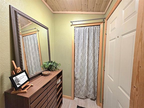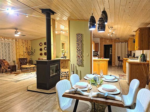 You'll love calling this fabulous property home! Remodeled mountain gem on 2+ acre corner lot, has all new windows & doors. In CME w/3 car garage, this very homey abode w/ Natural Gas is a must see! Upon entering you'll notice warm tongue & groove pine wood ceilings & walls, the double sided free standing woodburning fireplace, perfectly situated between the LR & DR, for all around enjoyment. The DR boasts new French doors for access to the level back yard and new stone patio. All will enjoy the large, spacious kitchen with eat in nook, plentiful cabinetry & storage pantry. The laundry room has storage too, with updated and cozy T&G wood, + exterior door to RV parking area. 2nd bed is spacious with wonderful natural lighting your plants will love, features 2 storage closets; 1 walk-in, 1 large w/shelving for all storage needs. Walk down the beautiful newly tongue and grooved hallway back to the main living areas, towards the primary suite on the opposite end of the home. The primary offers a wonderful, spacious walk in closet, a large attached bath through French doors with a soaking tub, dual sinks, free standing shower, plentiful storage and a recessed linen closet. Last but not least, walk out to your private deck to the backyard with large overhead pine tree for shade, equipped with it's very own sweetly singing birds. The homes spacious back yard is fenced, has a storage shed, a new stone patio and matching stone stairs. You'll also enjoy the covered front porch for evening sunsets or your morning coffee, with it's West facing mountain and meadow views all around. The detached 3 car garage is spacious, has a new picture window for plenty of natural light to enjoy your views while working, an overhead heater, as well as a ramp from the home to the garage for accessible access. Home is wired for a generator! Whether you're looking for a vacation home or everyday mountain living, pride of ownership shows in this lovingly updated, inviting home to call your own!