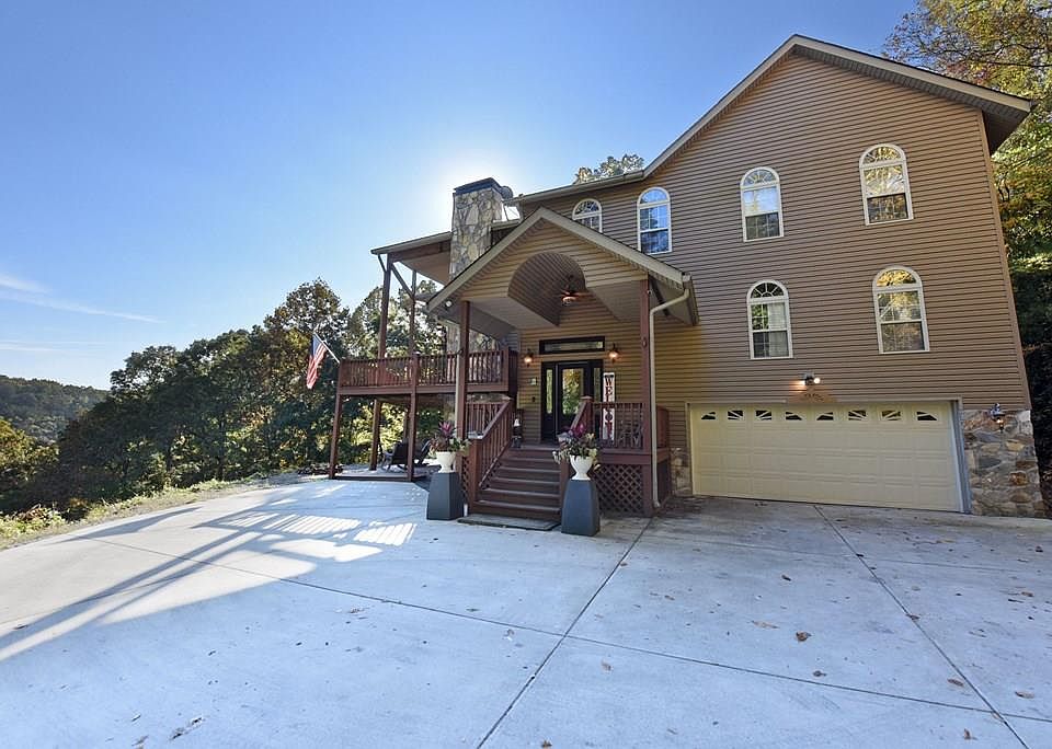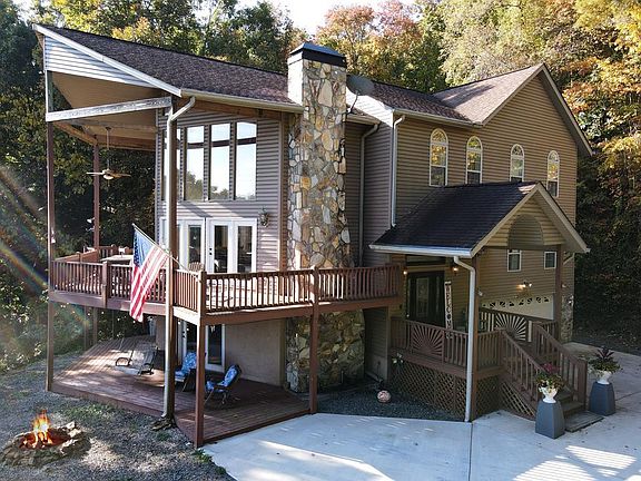 SIGNIFICANT PRICE IMPROVEMENT! River&mountain views, 50' of river front. 2.32 acres provides privacy, usable outdoor space as well as plenty of guest parking. Desirable prowl front of this spacious home fills every level w/ natural light. The main level living room is adorned w/one of two stack rock gas fireplaces & French doors. You won't miss anything while working from the kitchen thanks to the open concept. Bonus of double ovens for baker's delight. Convenience of laundry on main, off the kitchen. Sizable master, jetted tub, grand walk-in closet. Enjoy a sitting area/office in the loft & hideaway or entertain downstairs in the family & game room w/ walkout access. Plenty of room/storage - oversized attached garage. So much space for your family & friends to gather.