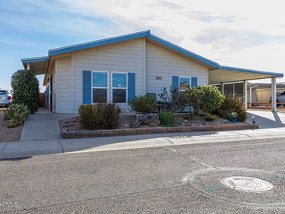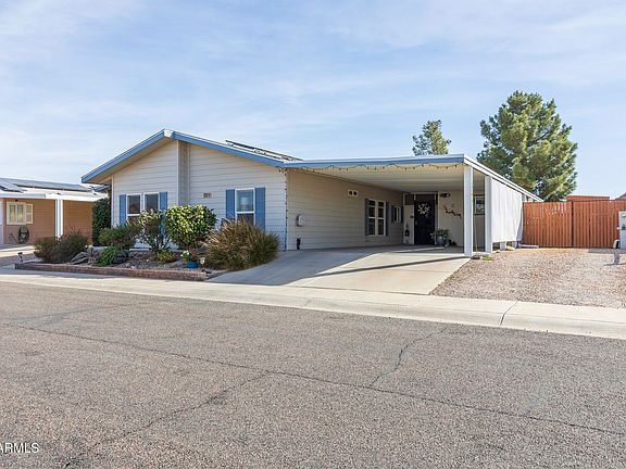Spacious floor plan with vaulted ceilings, and screened in Arizona Room. Home features 2 bedrooms plus a Den, open concept with large living room, dining room, huge eat-in kitchen with island and tons of cabinets. Storage throughout the home with a large laundry room, and split floor plan. Master bath has double sinks and a huge walk-in closet. 2x6 construction. Outback is a dream Oasis including an outdoor kitchen, Pergula, Artificial turf, custom mural and mature landscaping. The property comes complete with RV gate and full RV hookups. NO HOA, and affordable Solar Lease.