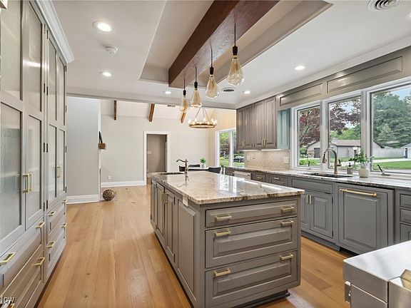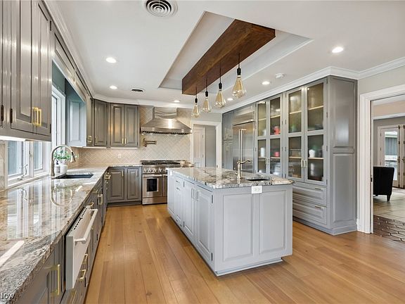 - Beamed Ceilings, Wet Bar, Bookcases, Tray Ceiling(s), Crown Molding, Entrance Foyer, Eat-in Kitchen, Granite Counters, His and Hers Closets, Multiple Closets, Recessed Lighting, Bar, Walk-In Closet(s), Jetted Tub