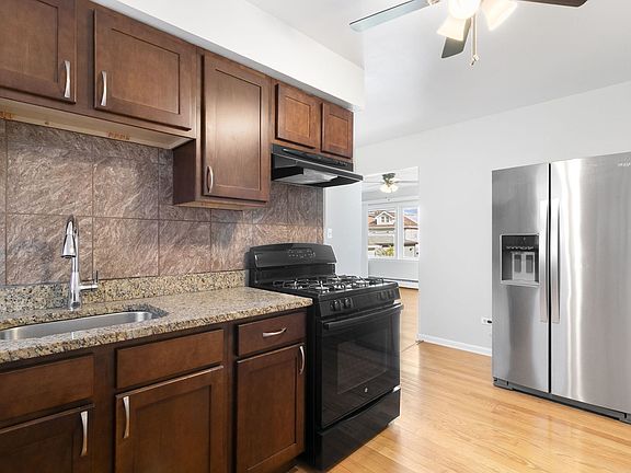One bedroom, raised first-floor unit featuring newly sanded and buffed hardwood floors and fresh paint throughout. You'll love the abundance of storage with a huge coat closet, linen closet, pantry closet, storage closet, and a walk-in closet in the bedroom. The bright living room offers large windows with blinds throughout and ceiling fans in every room for added comfort. The kitchen includes a full-size refrigerator, oven/range, granite counters, and ample cabinet space. Conveniently located near transportation, shopping, and dining in a well-maintained brick building. Heat, water, and parking are included. Non-smoking building. Available immediately. Landlord prefers 650+ credit score, 3x rent income, and good rental and work history.