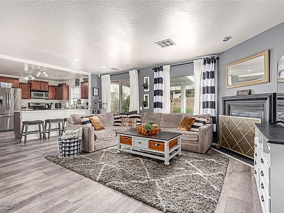 spacious kitchen comes complete with a walk-in pantry and all appliances included. Upstairs, there is a dedicated laundry area that includes a washer & dryer. The primary suite offers a peaceful retreat with plenty of natural light and an en-suite bath. Downstairs there is a versatile den area that provides additional space for a home office, study or hobby room. Step outside to a covered patio ideal for entertaining or enjoying quiet mornings with your favorite beverage. This move in ready home combines comfort, practicality, and value -- don't miss your chance to make this your home in the desirable SW part of Las Vegas!