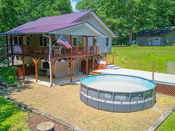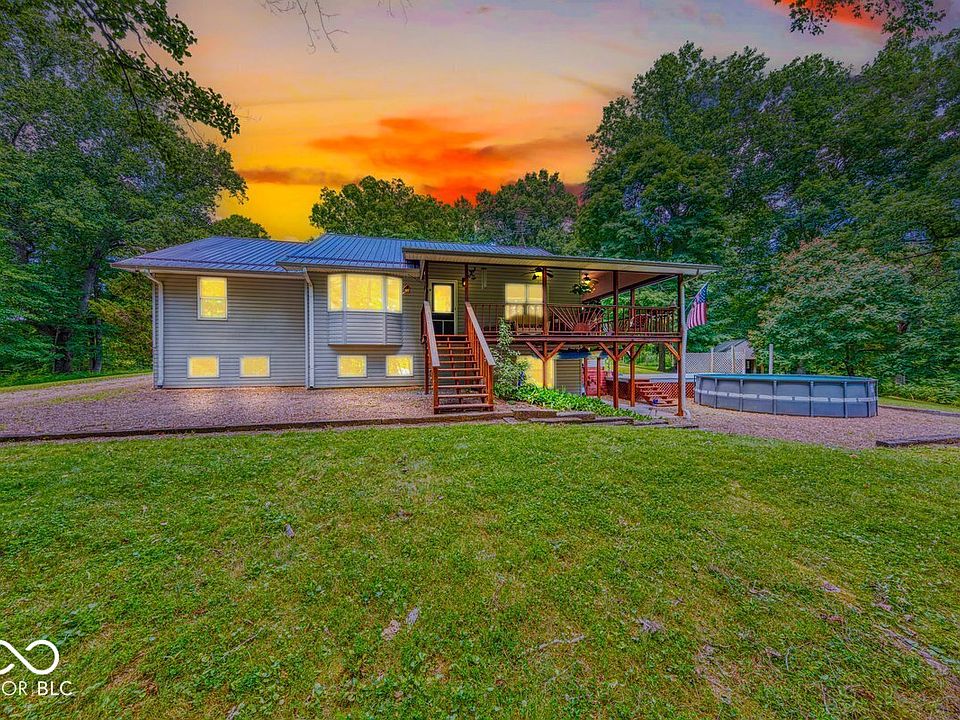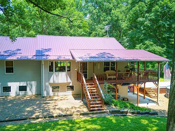 Nestled at 8910 Richarts RD, MORGANTOWN, IN, this inviting 5b3b home in BROWN COUNTY offers a tranquil escape. This single-family residence is ready to move in with plenty of storage in the 28x32 POLE BARN. The living room welcomes you with its soaring vaulted ceiling, creating an airy and expansive atmosphere that invites relaxation and gatherings. Imagine the possibilities for creating a comfortable and stylish space, perfect for both quiet evenings and lively entertainment. The kitchen is thoughtfully designed with a peninsula, providing both additional workspace and a casual dining area. Shaker cabinets offer a blend of classic style and functionality, promising a delightful cooking experience. Outside, a deck and patio extend your living space into the outdoors, perfect for enjoying the expansive lot area of 5 acre lot. A private pool offers a refreshing oasis, while the porch provides a welcoming spot to relax and enjoy the surroundings. This 3200 square foot home, built in 1994 with a main level master bedroom and a walk-out finished basement , offers a unique opportunity to embrace comfortable living on a sprawling lot. UPGRADES INCLUDE METAL ROOF 4 YRS OLD, UPGRADED SIDING, HVAC 2 YRS OLD, 6 PANEL SOLID DOORS,ANDERSON WINDOWS, NEWER CARPET, NEWLY STAINED CEDAR DECK