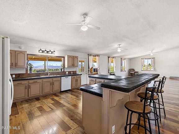 This is country-living at its best! This cozy site-built home sits on a spacious 2.73-acre double homesite, offering peace, privacy, and endless potential. The freshly painted exterior is complemented by a newer metal roof and an expansive wraparound porch, perfect for soaking in the surrounding views and tranquil setting. Step inside to a bright and open living space featuring soaring vaulted ceilings and a cozy wood stove that adds warmth and character. The living area flows effortlessly into the large, open kitchen, which has been thoughtfully updated with new concrete countertops and offers plenty of room to cook, gather, and entertain. The oversized primary bedroom provides a peaceful retreat with ample room including a space for a sitting area or home office. Two additional generously sized bedrooms and a second full bath ensure everyone has their own space. The home also includes all-new vinyl flooring throughout, adding a fresh, modern feel to every room.Outside, there's room for everything and everyone including your animals, RV, and toys. The property features areas for pets, Chicken coop, established garden beds for homegrown produce, and an extra-large workshop/garage that's already plumbed to add a bathroom, offering endless opportunities. RV parking with hookups is ready to go.With beautiful panoramic views, abundant space, and a charming country feel, this property truly has it all plus the added benefit of two separate lots for added flexibility and value.