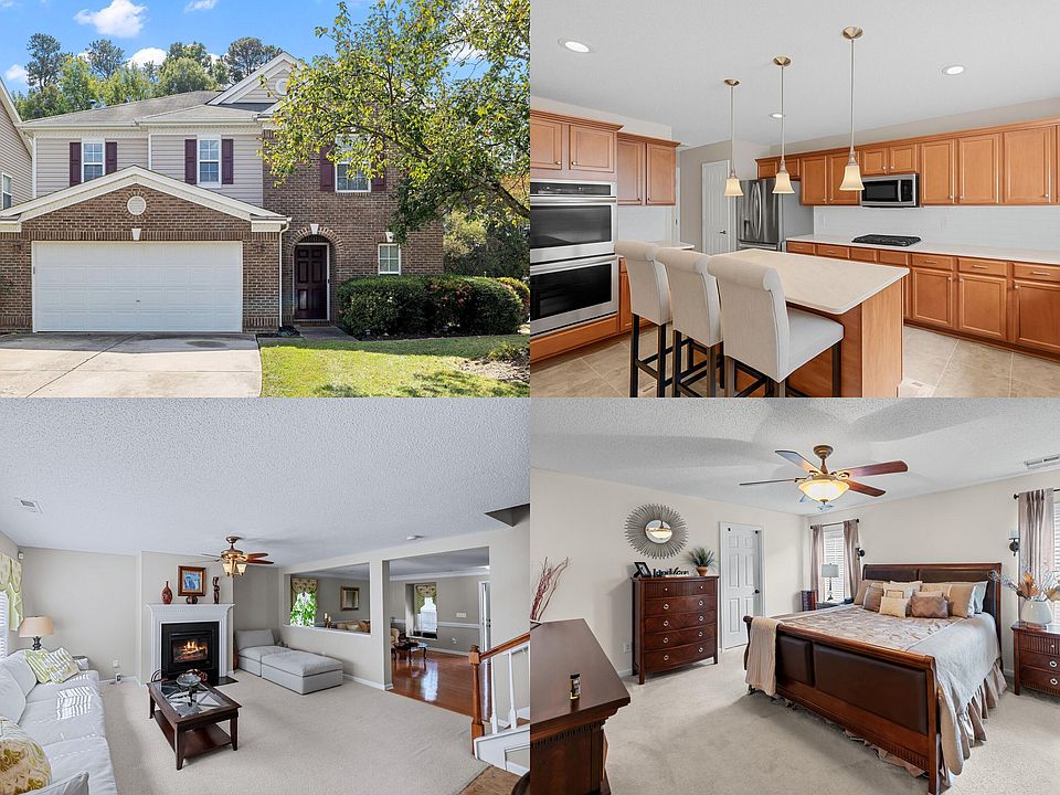 This home offers comfort, space, and style in every corner. The gourmet kitchen is a chef's dream, featuring a double oven, gas cooktop, a large kitchen island with bar seating, ample cabinet and drawer storage, cultured marble countertops, a tiled backsplash, and tiled floors. Sunlight fills the living spaces, including a front living room with beautiful hardwood floors and a cozy family room with a gas fireplace. The spacious primary suite is a relaxing retreat, complete with a luxurious bathroom designed for unwinding after a long day. An open loft provides flexible space for work, play, or additional living needs. Step outside to the patio with a retractable awning or enjoy the sunroom, all while taking in the peaceful surroundings. The neighborhood is welcoming, with quiet streets, walking and biking trails, and just minutes to the Neuse River Greenway Trail. With easy access to 540, Capital Blvd, and nearby shopping and dining, this home perfectly blends convenience and community.