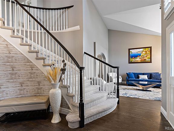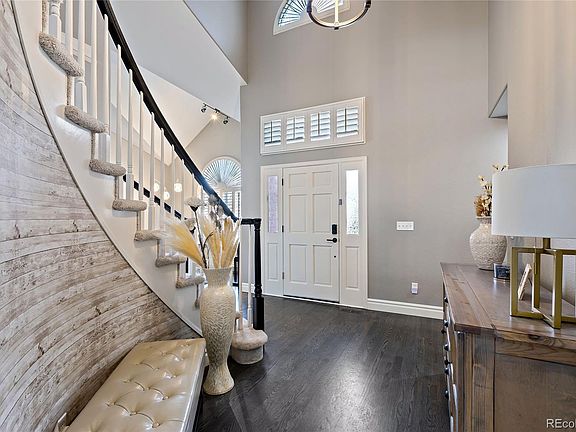 This updated and move-in ready home in Highlands Ranch boasts modern features and amenities for a comfortable and convenient lifestyle. The kitchen is a chef's dream with a Dacor Range, quartz countertops, a butcher block island, new cabinets, and modern light fixtures. The main floor features beautiful dark stained oak floors that flow seamlessly throughout. The spacious family room with a gas fireplace is perfect for gathering and entertaining, and it conveniently opens to the kitchen.