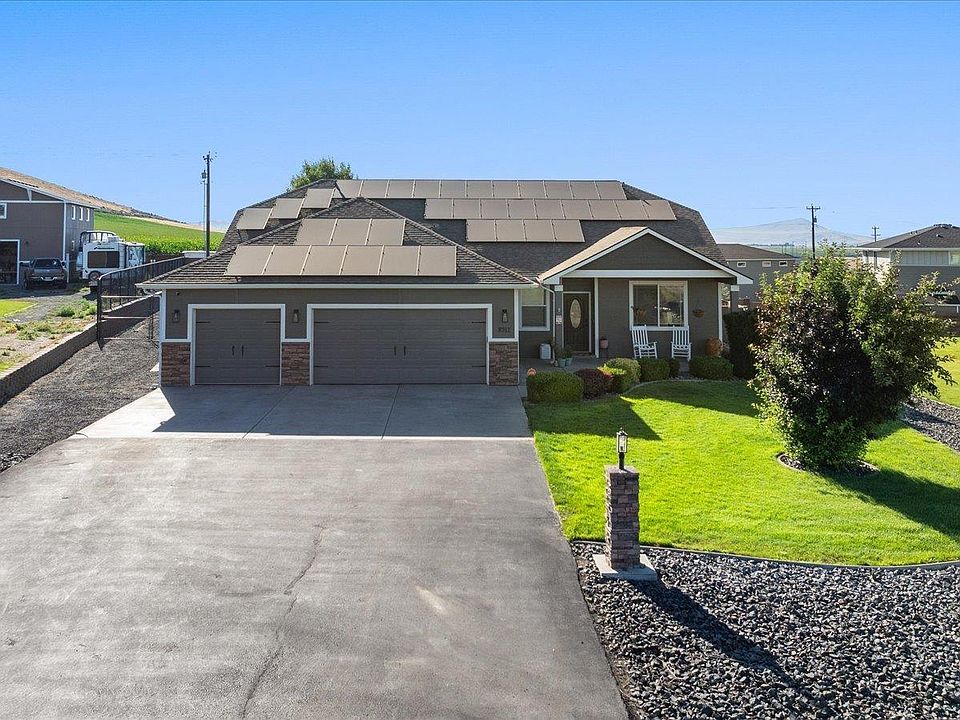 MLS# 285865 Awesome one level home on nearly an acre in Kennewicks Summit View neighborhood!Great room rambler plan offers large open kitchen with tons of cabinet and counter space, plus a wine rack, center island, tile and stainless steel appliances. 3 bedrooms plus a large den w/ closet, could be 4th bedroom, family room, living room, formal dining and a breakfast nook. Home has a deep 3 car garage, with insulated doors, openers, AND is air conditioned and heated with its own unit for year around usability! Back patio is huge, approximately 42x54, partially covered offering lots of shade, there is so much room for summer fun and entertaining. Large back yard is fully fenced and professionally landscaped, with garden area, play area and RV parking area that is fully pull through with double RV gates at both ends of the property.$70,000 solar panel package installed, paid for and working great. Ready to save the new owners lots of money. (Average electric bills are about $50 a month!)High quality water filtration system is installed and owned, providing great water throughout the house.Large shed out back will stay too, offering lots of storage space for all of your extras and lawn care equipment.. lawn care you say, John Deere riding mower, gas edger, AND new snow blower will all stay for the new owners convenience! W/ acceptable offer.Stainless steel fridge, washer and dryer, security cameras, ring door bell and so much more will all make this home truly move in ready!