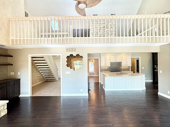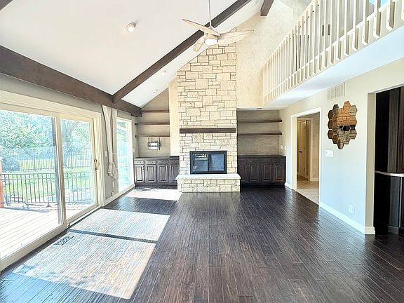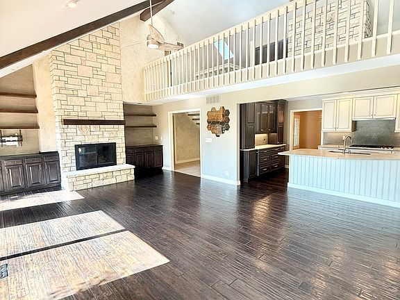 Warm & Inviting One-and-a-Half Story in Tallgrass! Nestled in a highly sought-after area on the Tallgrass Golf Course, this stunning home offers the perfect blend of comfort, charm, and elegance. Surrounded by lush landscaping and mature trees, you’ll fall in love with the gorgeous backyard views and outdoor living spaces that make this property truly special. Inside, the home welcomes you with soaring vaulted ceilings, large windows, and skylights that fill the rooms with natural light. Rich hardwood floors and two stone fireplaces add warmth and character throughout. The main floor features two bedrooms and a full bath, while the upstairs is a private retreat with a spacious master suite, cozy loft area, and your own balcony overlooking breathtaking views. The lower level is designed for entertaining, complete with a wet bar and a hidden media/storage room with built-in shelving—a unique feature you’ll love to show off! Step outside to your own backyard oasis, where a covered patio with stonework, a fireplace, and a serene setting make it the ultimate spot to relax or host gatherings. Location, location, location! On Tallgrass Golf Course, close to dining, shopping, and everything East Wichita has to offer, this home is as convenient as it is inviting. This is more than a house—it’s a lifestyle. Don’t miss your chance to call it home!