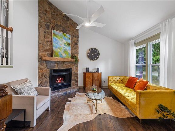 A stunning two-story stone fireplace welcomes you into the home, highlighted by a soaring cathedral ceiling. The open-concept layout seamlessly connects the kitchen, dining area, and living room—perfect for modern living. The kitchen, also featuring a cathedral ceiling, granite countertops, and stainless-steel appliances. The luxurious primary bathroom offers a spa-like retreat with a freestanding soaking tub, a grand tiled shower with built-in bench, and a marble-topped vanity. The spacious primary bedroom includes an oversized walk-in closet with a skylight. Beautiful LVP flooring runs throughout much of the home, adding warmth and elegance. Recent updating has included: 2023 new fence for backyard, 2023 Several trees removed with grass replanted, front and back, 2025 new landscaping around sides of house, new bushes planted in front, 2024 deck reinforced structurally, 2025 new mailbox and planter installed, 2025 deck repainted, 2023 new LVP floors, 2023 house repainted throughout, 2023 lower cabinets in kitchen repainted, 2023 new LG washer and dryer, 2023 new insulation in the crawl space, 2024 reclaimed wood mantle added to stone fireplace, 2025 new closet systems installed in primary, downstairs hall, primary guest room, 2019 updated bathrooms, Water heater is tankless. Unlimited hot water! Enjoy convenient access to Crabtree Valley Mall, downtown Raleigh, RDU Airport, Research Triangle Park (RTP), as well as nearby outdoor escapes like Shelley Lake and Lake Lynn!
