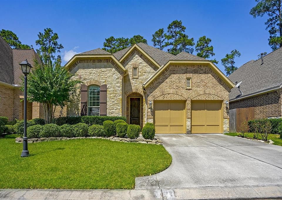 Perfect low maint. patio home, gated, and just minutes to I-45 and all amenities! 4/3/1 plus study, formal dining room, gameroom and media room! Finishes include hardwood and tile flooring, built-out master closet that leads into laundry, full plantation shutters &granite countertops. Large kitchen w/ island, built-in desk space & professional grade appliances! Covered back patio w/ wrought iron fencing, fireplace and view to wooded reserve, great for privacy! Lowest tax rate in The Woodlands!