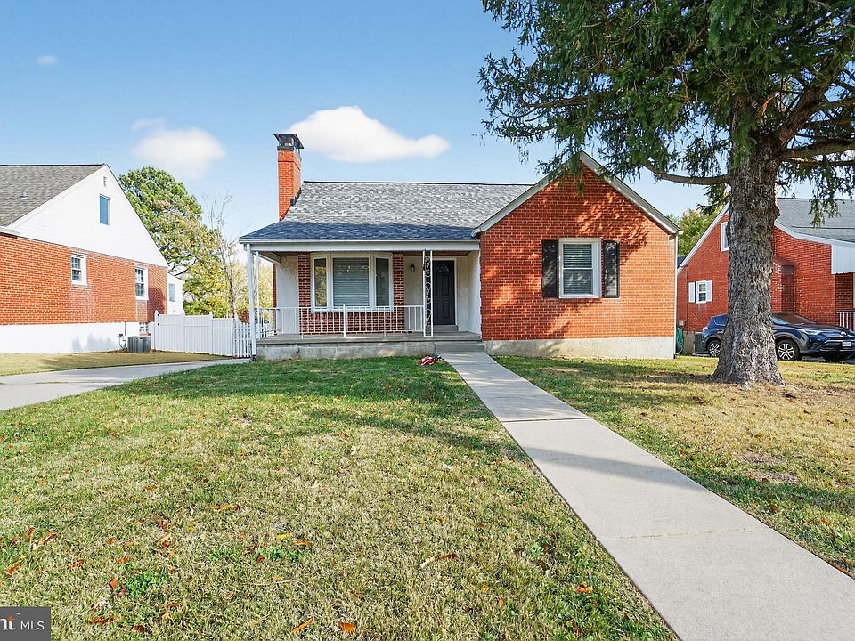 Beautifully maintained 4-bedroom, 2-bath Cape Cod offering timeless charm and modern updates. The exterior features a manicured lawn, a welcoming covered front porch, and a classic brick façade. Inside, the main level showcases luxury vinyl flooring in the living room, dining area, and kitchen, complemented by a large bay window and a brick fireplace with a detailed wood mantel that adds warmth and character. The open-concept dining room and kitchen provide excellent space for everyday living and entertaining. The kitchen includes recessed lighting, stainless steel appliances, a double pantry, and access to a covered deck with ceiling fans—perfect for outdoor relaxation or dining. The main level also includes two bedrooms with carpet and a full bath. Upstairs, two additional bedrooms offer flexible use and additional storage space. The finished lower level features a spacious open area with a brick fireplace with a wood-burning stove insert, recessed lighting, and a full bath with a walk-in shower. The walk-out basement opens to a fenced backyard with a landscaped lawn and a utility shed. This well-cared-for home combines original character with thoughtful updates, offering comfort and convenience near shopping, dining, and major commuter routes.